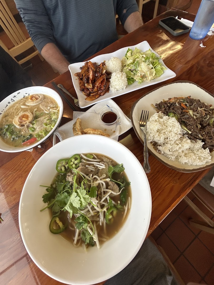 The food was absolutely amazing. Highly recommended the sushi burritos and Pho. The waitresses that helped us was so kind. Would definitely come again.