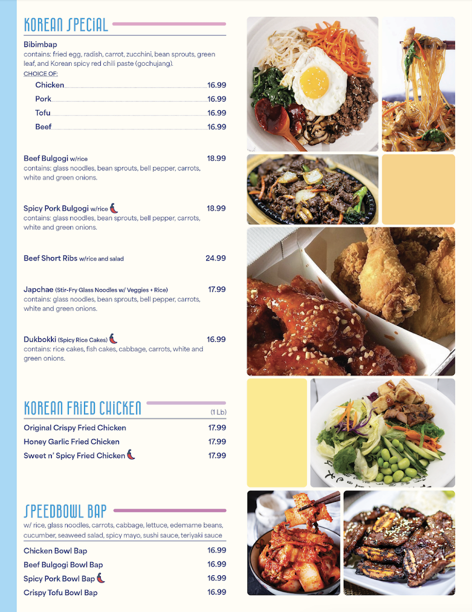 SpeedBowl offers a thoughtfully curated menu that blends comforting Asian classics with vibrant, casual bites. The overall feel is approachable and relaxed, making it easy to enjoy whether you’re stopping by for a quick lunch or settling in for a cozy dinner.